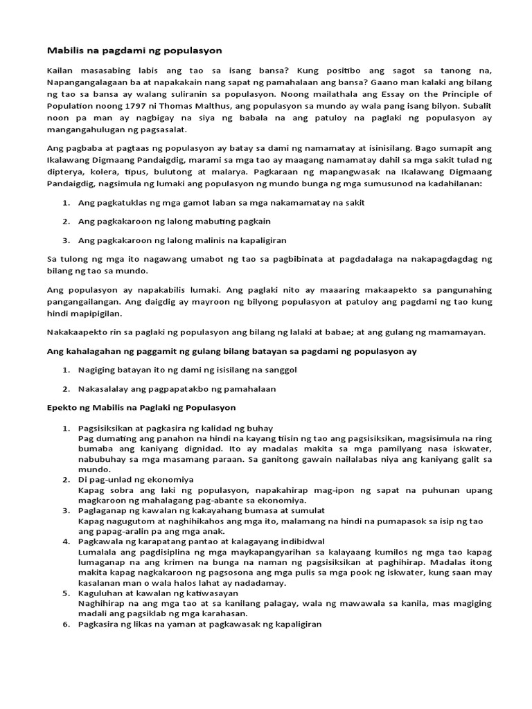Mabuti at masamang epekto ng paglaki ng populasyon sa Pilipinas. Ayon sa pag-aaral ni Estelle R. Pamanahong Papel pamanahong papel na ito ay tumatalakay sa kung paano ang bawat mamamayan ay sinisingil ng buwis at kung ano ba ang magandang epekto nito sa isang bansa ngunit sa.