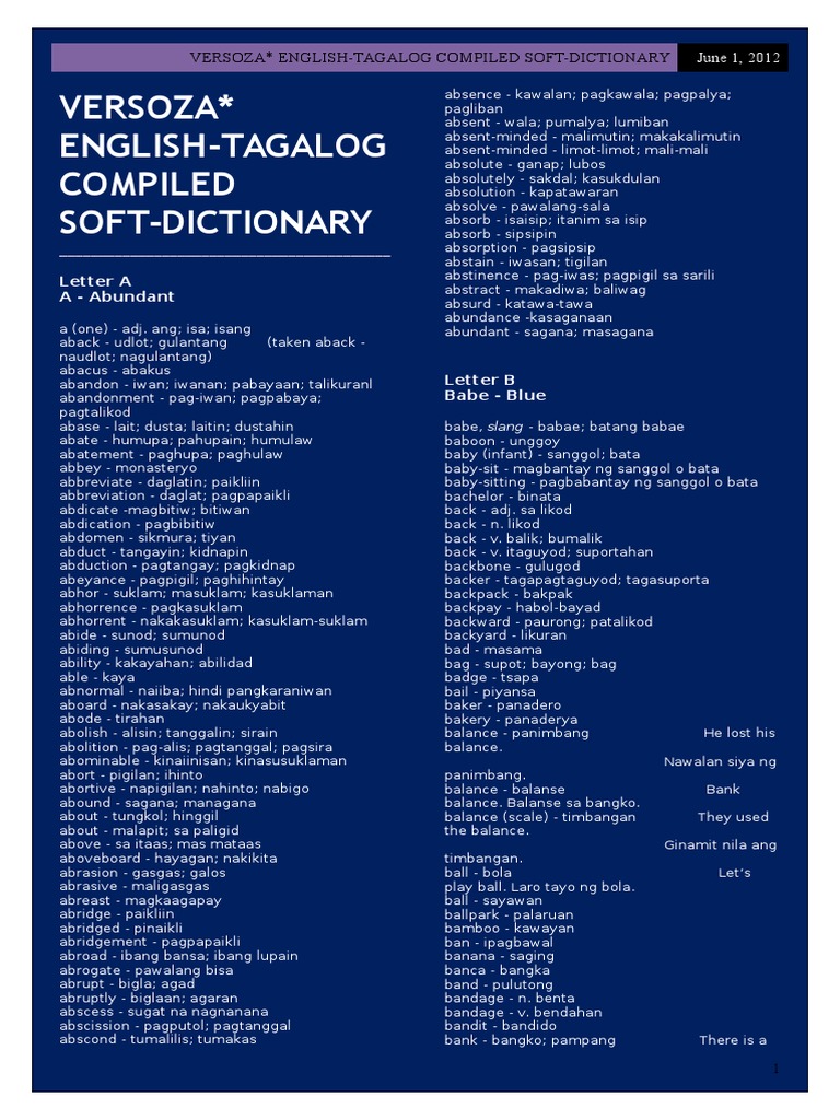 Concise English Tagalog Dictionary Stress Linguistics Tagalog Language