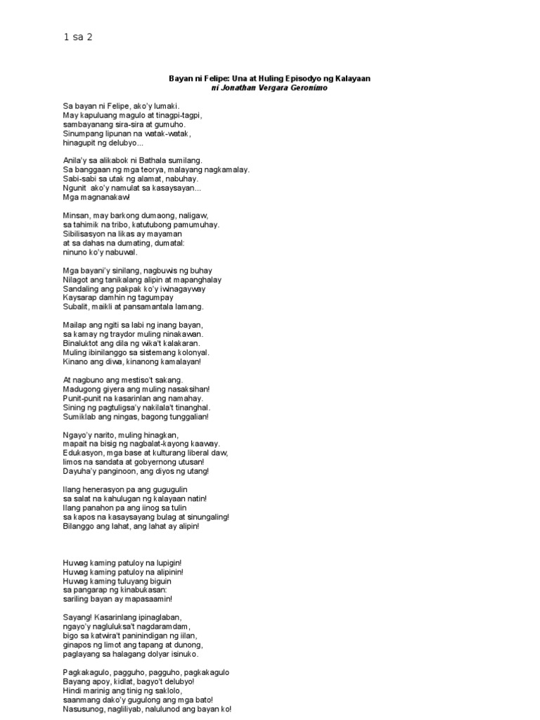 Bayan Ni Felipe Una At Huling Episodyo Ng Kalayaan Ni Jonathan Vergara Geronimo