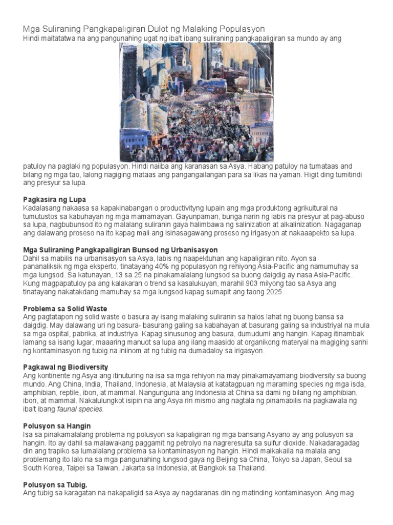 Mga Suliraning Pangkapaligiran Dulot Ng Malaking Populasyon